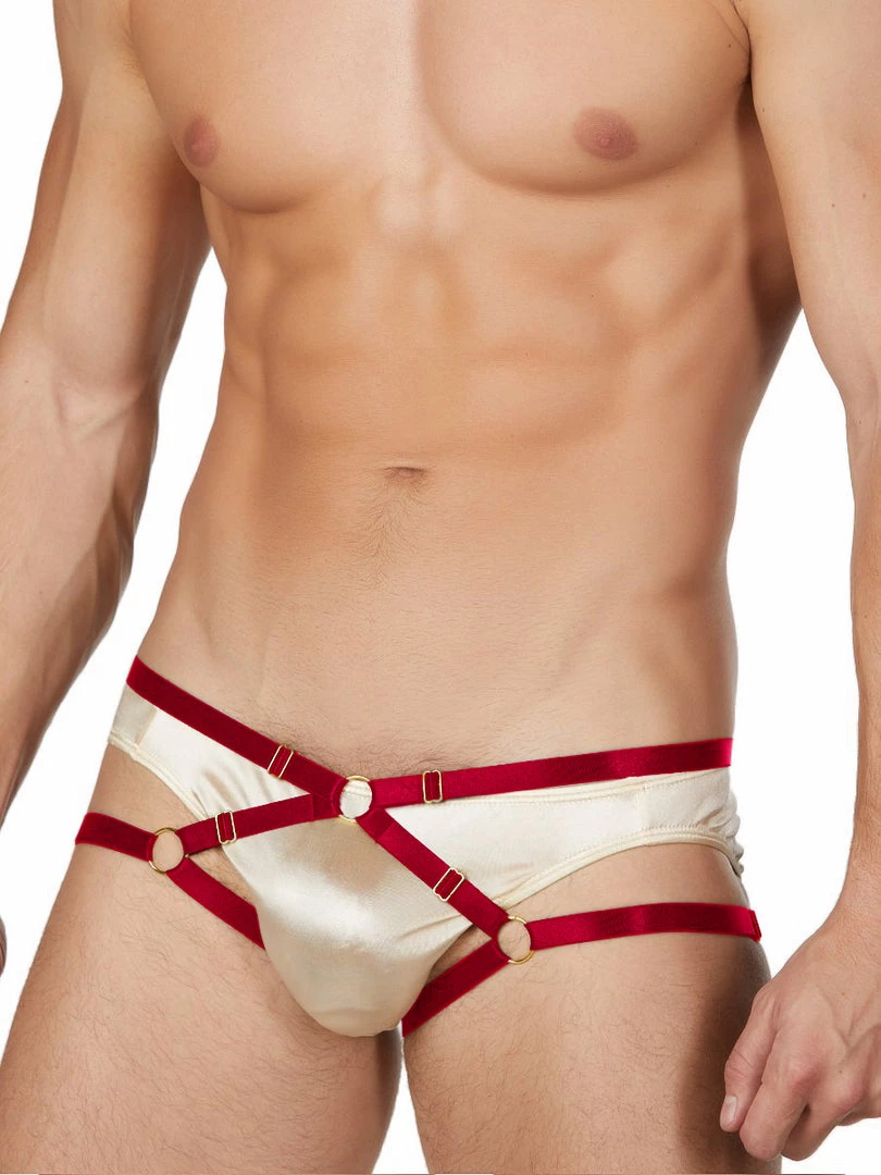 Display yourself (with or without a panty underneath) in the best way possible with the Panty Strap Harness.  The harness is made from sturdy satin elastic and is completely adjustable around waist and leg for a perfect fit.  Choose to wear this edgy design over your favorite pair of panties, or skip the underwear altogether and wear it nude underneath. Â