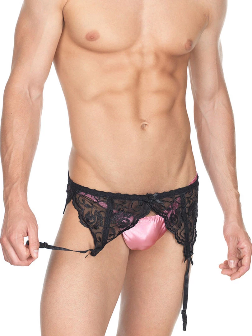 Beautiful delicate lace garter belt with four attached and adjustable garters. The waist is elasticated with an adjustable clasp at the back.