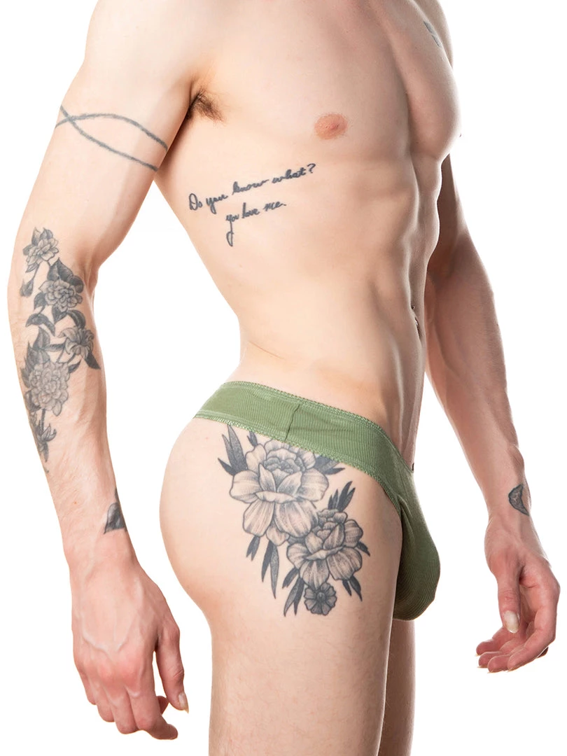 Gift yourself a cute thong that is both feminine and eco-friendly! This thong is made from Lenzing Viscose, an environmentally friendly, softly ribbed fabric. You’ll love the feel and fit of these light and stretchy thongs. The ribbed thong is shaped and seamless in front, has a waist and legs finished with picot elastic, and a cheeky thong back.