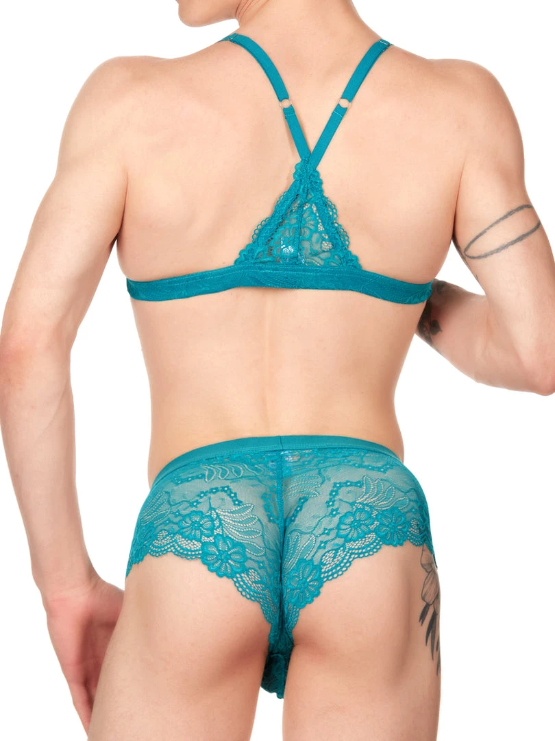 Beautiful lace and delicate detailing come together in the Valentina Lace Bra. The scalloped lace cups are slightly shaped with a center seam, and the bra will fit perfectly on your chest because of the sturdy 1″ lace-covered elastic band under the cups. With narrow adjustable criss-cross bra straps in back. Easy to slip into, easy to wear and easy on the eyes!