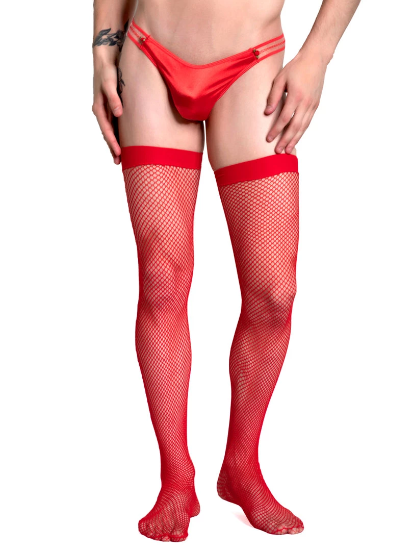 A colorful stocking for guys! Tune into your adventurous side with these playful fishnet stockings! Very stretchy and comfy. The supportive band hugs your thigh just right. It can be worn with or without garters. One size fits most! *Panty is sold separately.