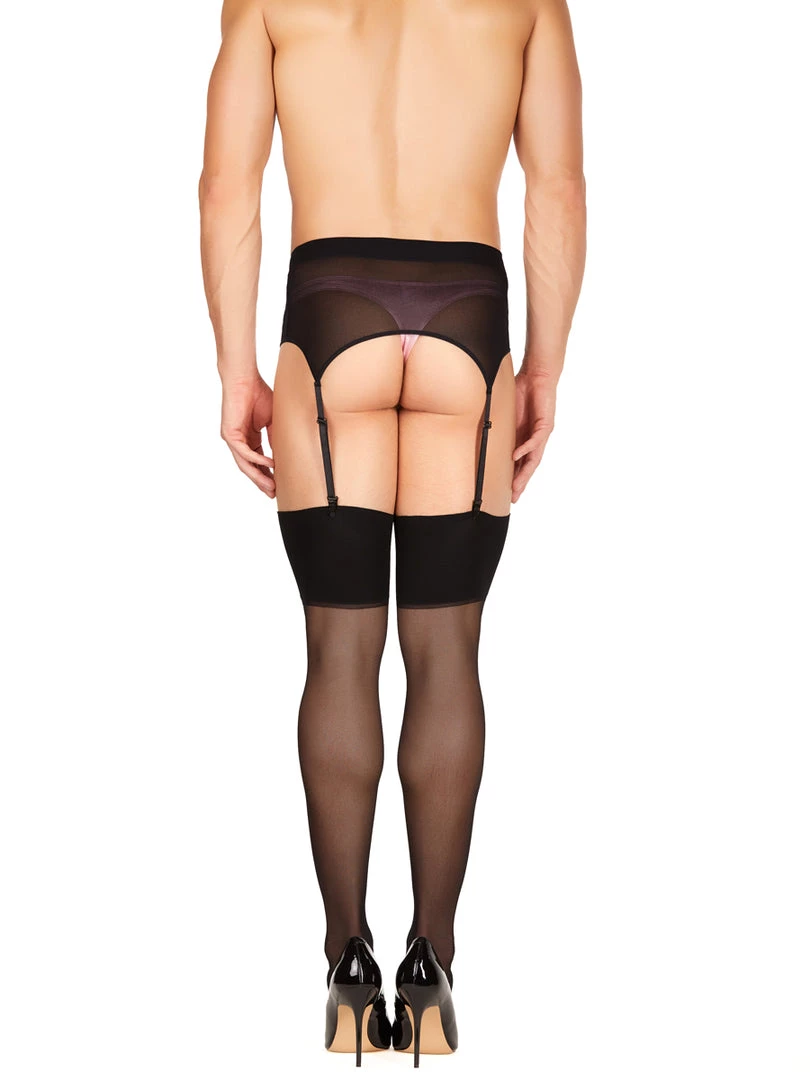 A very stretchy knit fabric make up this cute and fitted Garter with matching stockings and four sturdy garters and a 15 dernier matching stocking to complete the look.