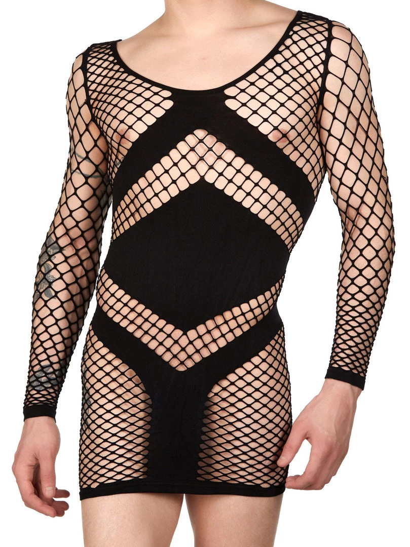 Flaunt what you’ve got underneath this fishnet and diamond block. A sexy and chic sheer floral pattern makes this the perfect compliment over your favorite set of lingerie. Trimmed around the collar and shoulders with a thicker black lace.