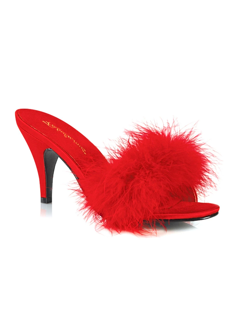 Channel your inner glamour with the Marabou Slip-On! Perfect for lounging around the boudoir with our chiffon and satin robe or a cute pair of pink panties and a matching bra. These slip-on heels are trimmed with fluffy marabou and have a 3″ heel. Just high enough to give your legs a sexy and lean look, without making it difficult to walk.