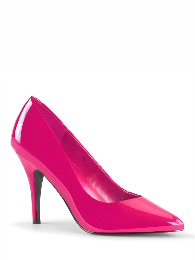A perfect pump that is adorable! Now that you have all the style staples necessary for sustaining a well-rounded and feminine lingerie wardrobe, you can refocus your energy on dressing glamorously rather than worrying about where to find that perfect pump. These comfortable but not-quite-sensible high heels will provide that extra punch of color and texture to every ensemble. Slip them on and add four inches of glorious height in PVC Pink or Velvety Smooth Black.