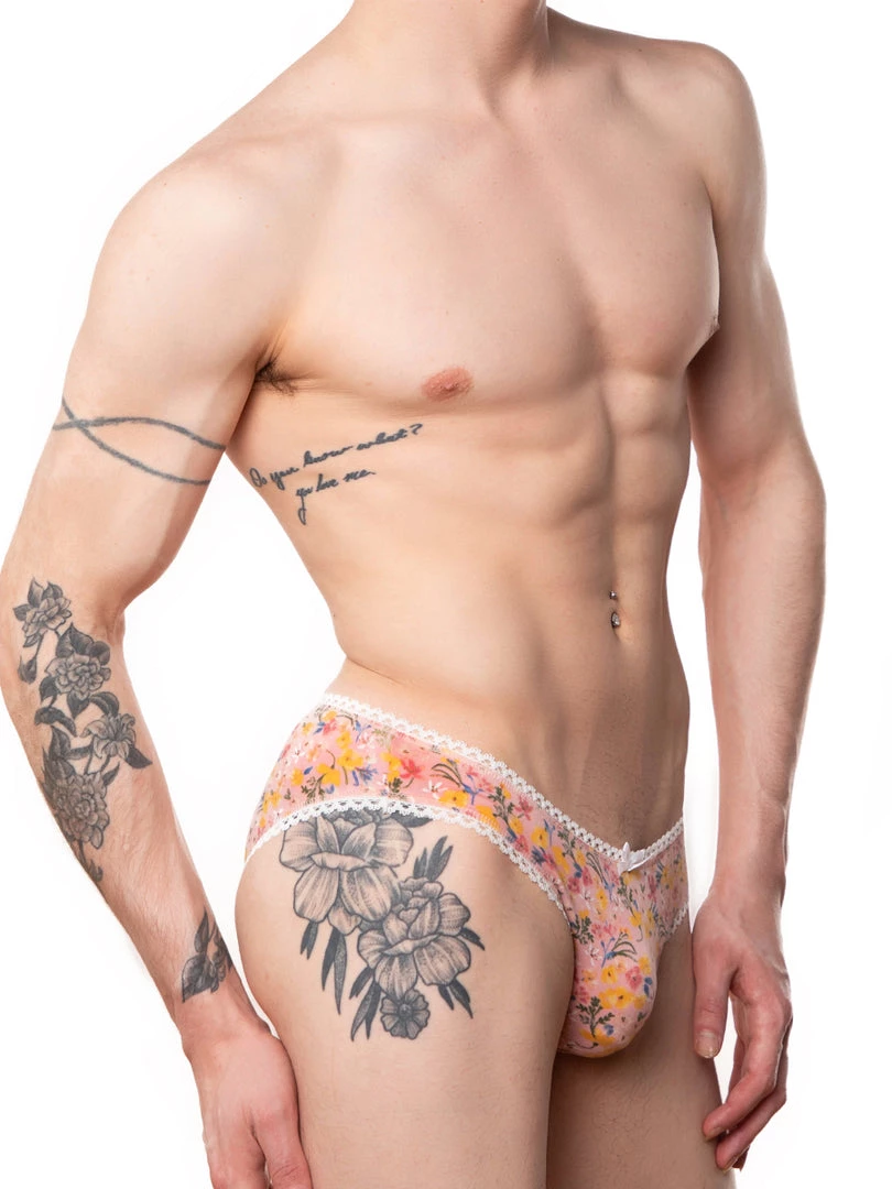 The Ashley Panty got an update with a new ditzy floral print. Made from our signature plush, soft-touch fabric. Edged with beautiful white picot elastic. A flat and minimal front for comfort and a smooth seamless back. Also includes an inner gusset and satin bow detail. Crop top not included.