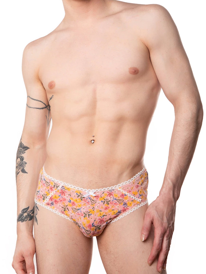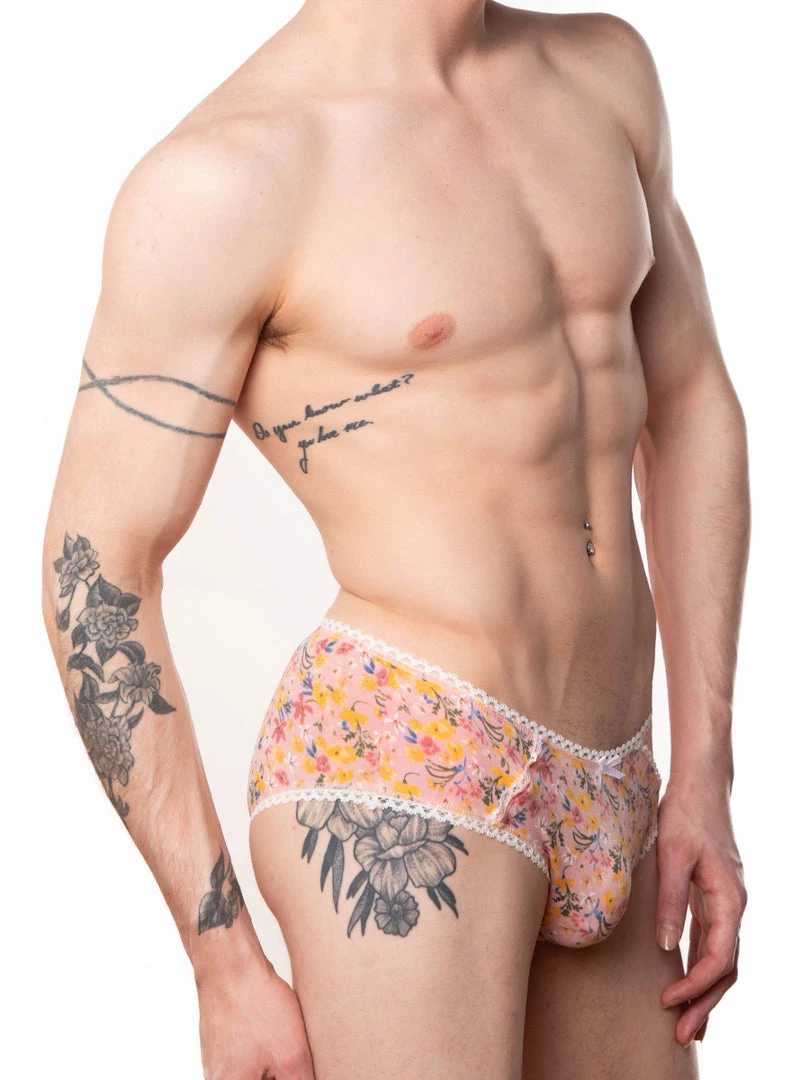 This hipster style minimal front panty is made from a soft-touch new floral print fabric. Trimmed with contrasting picot at the waist, hips, and legs. Made to have a seamless and minimal front with a full-coverage back. Finished off with a dainty bow at the center front for a subtle feminine touch.